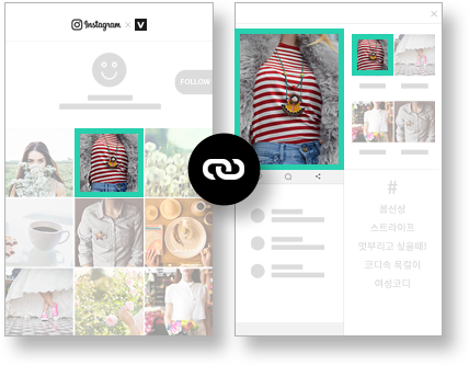 V파인더로 인스타그램 이미지와 상품 상세링크를 연결해보세요.